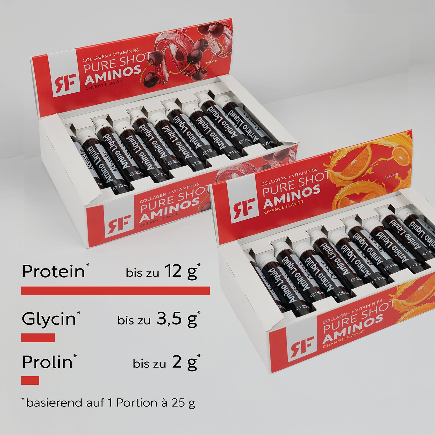 Inhaltsstoffe: Wasser, Kollagenhydrolysat (38%; Ursprung: Rind), Fruktose, Säuerungsmittel (Citronensäure), Aroma,