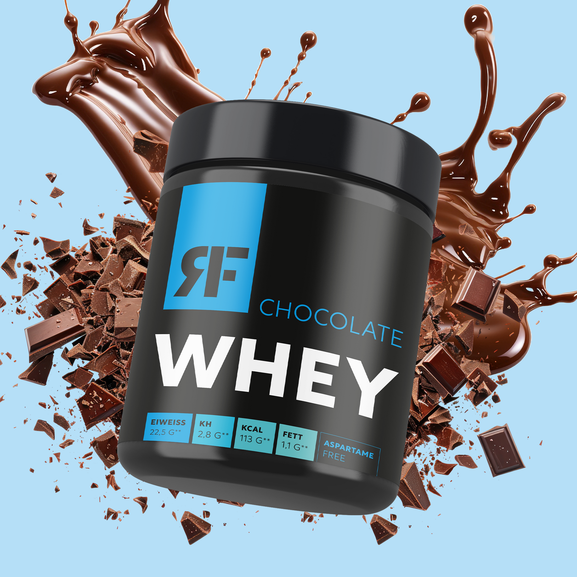 Inhaltsstoffe: MOLKENeiweißkonzentrat (89,1 %), stark entöltes Kakaopulver (7,5 %), Aroma, Süßungsmittel (Natriumcyclamat, Acesulfam K, Saccharin), L-Ascorbinsäure, Emulgator (SOJAlecithin), Nicotinamid, DL-alpha Tocopherylacetat, Calcium-D-pantothenat, Trennmittel Siliciumdioxid, Riboflavin, Pyridoxinhydrochlorid, Thiaminmononitrat, Pteroylmonoglutaminsäure, D-Biotin, Cyanocobalamin.